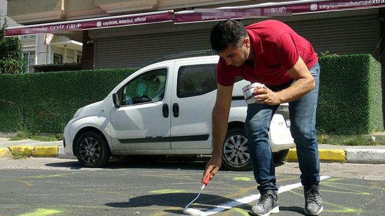 Avcılar'da asfaltlanan yolda kasisi görmeyen sürücülerin araçlarının zarar görmesi üzerine bölgedeki bir esnaf, eline boya ve fırçayı alarak kasise uyarı çizgilerini çekti.