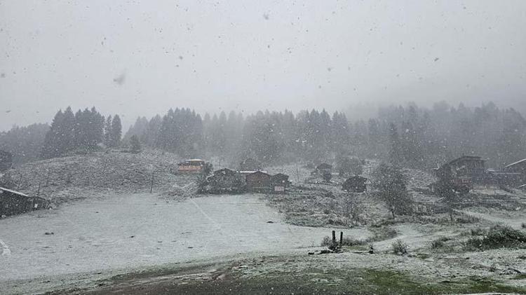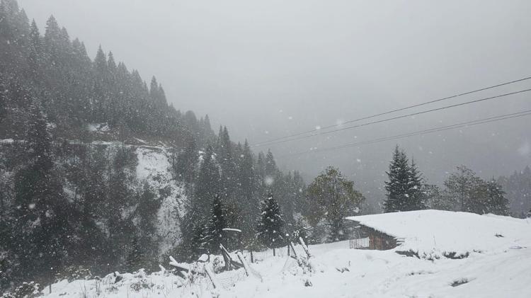 Karadeniz Bölgesi'nde etkili olan kar yağışı nedeniyle yüksek kesimler, beyaza büründü.