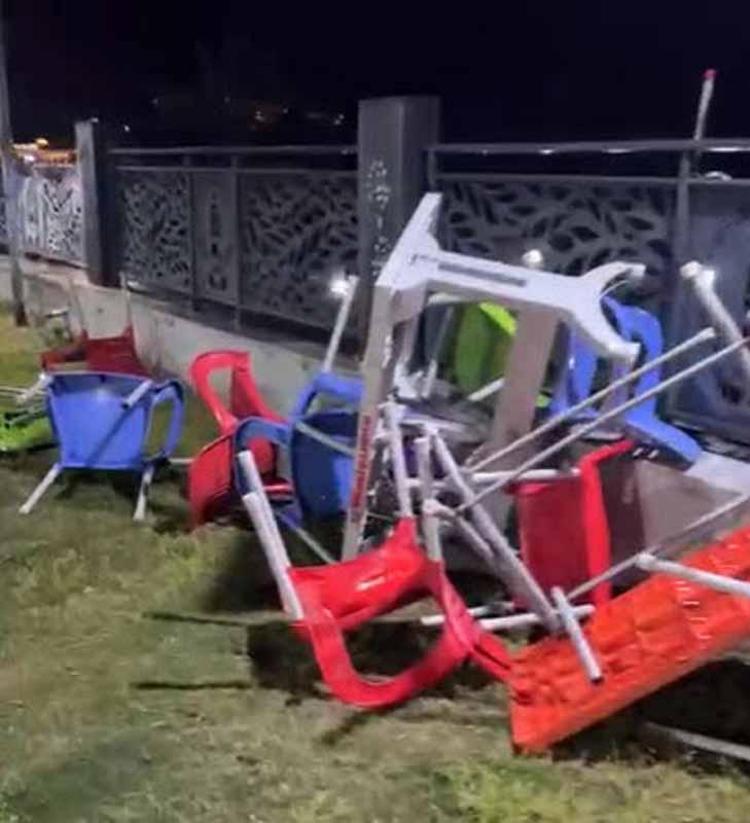 Bahçedeki çam ağaçlarından bazıları da kuvvetli rüzgar nedeniyle devrildi. Devrilen ağaçlar, belediye ekipleri tarafından gece boyunca kesilerek, bulundukları yerden kaldırdı.
