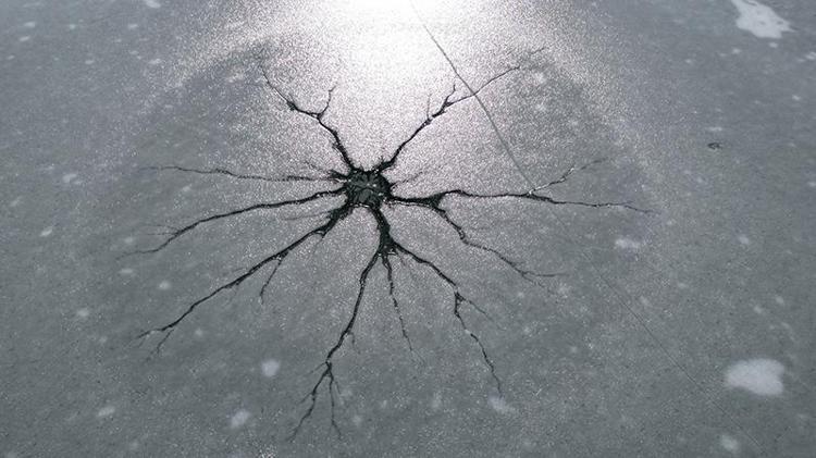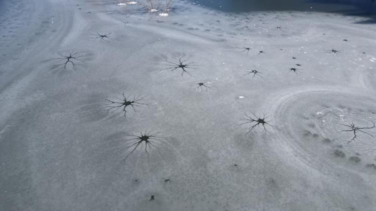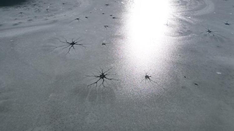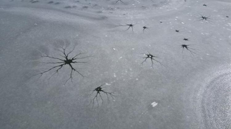 Baraj gölünün buz tutan yüzeyinde ilginç şekiller