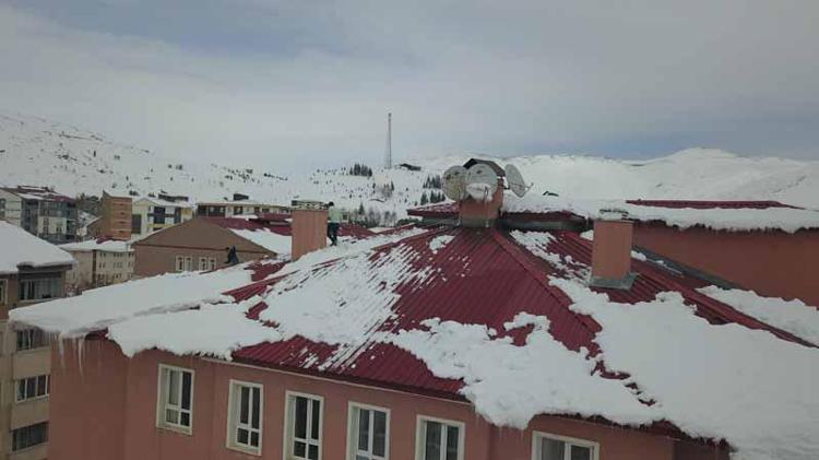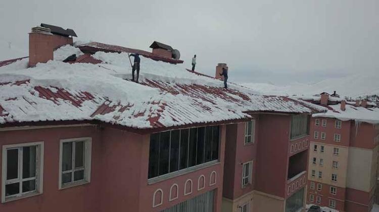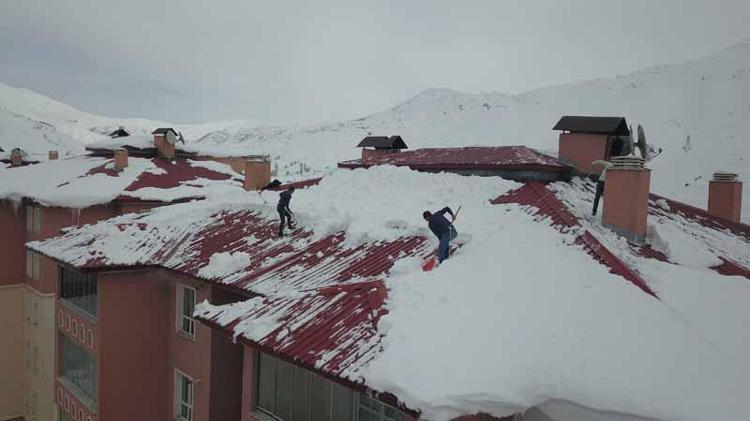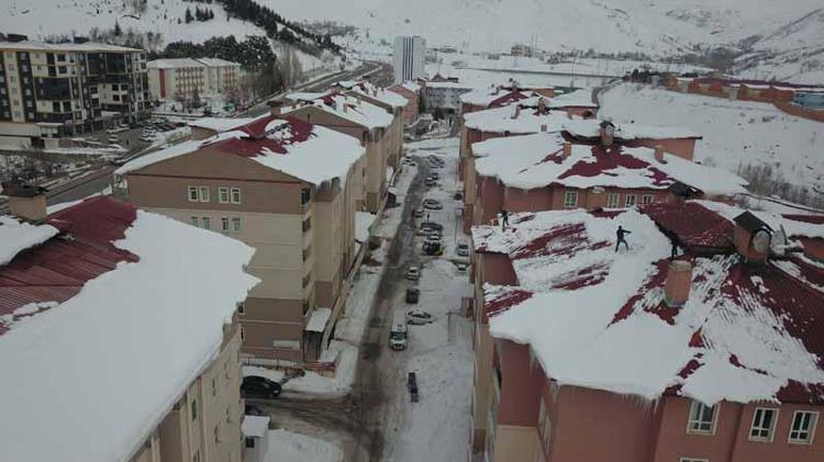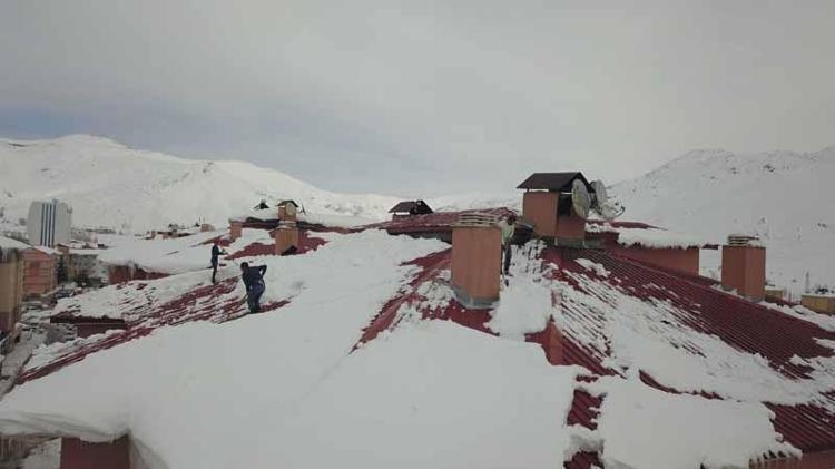 Bitlis'te bina çatılarında biriken karlar, küreyiciler tarafından belli ücret karşılığında temizleniyor. Bellerine bağladıkları iplerle çatı ucuna kadar uzanan küreyiciler, bir yandan da soğukla mücadele ediyor.