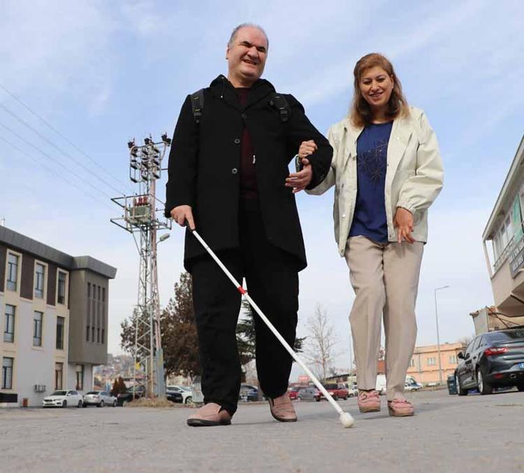 Ben yüzde 5 görüyorum. Eşimi yolda, 'Sağa dön, sola dön, araç var' diye yönlendirebiliyorum. Sosyal medyada bir grubum vardı. Kendisini gruba aldım. Orada sesimi duyunca beni beğenmiş. Ben de onu çok sevdim. Sesi çok güzeldi, yüreği daha güzelmiş. Kendisi merhametli. Beni hiç incitmiyor. Bazen ben ona sert çıkabiliyorum ama o bana hiç yükselmiyor. Sağ olsun bana hiç kızmıyor. Önce saygı, sonra sevgi. Kendisini aileme zor kabul ettirdim. Ailem, '2 görme engelli nasıl yapacaksınız?' dediler. Sonunda başardık. Görme engeli ve diğer engeli olanlar başarır. Azmetmek lazım" dedi.