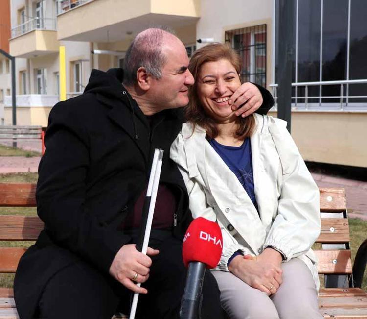 Kayseri'de yüzde 95 görme engelli Fatma Dağ (49) ile Çorum'da yaşayan görme engelli Suat Dağ (43), birbirinin sesinden etkilenip aşık oldu. 1,5 yıl önce tanışan çift, evlenip Kayseri'de yaşamaya başladı. Mutlu bir evliliklerinin olduğunu belirten Fatma Dağ, "30 yıldır görme engelliyim, yüzde 5 görüyorum. Eşimi yolda, yönlendirebiliyorum. Sosyal medyada bir grubum vardı. Kendisini gruba aldım. Orada sesimi duyunca beni beğenmiş. Ben de onu çok sevdim. Sesi çok güzeldi, yüreği daha güzelmiş" dedi.