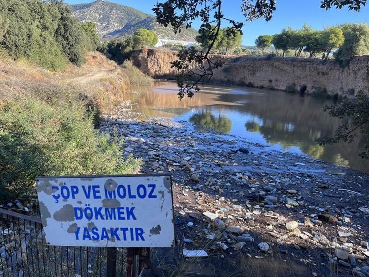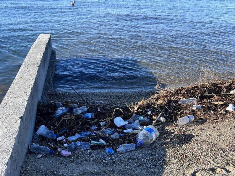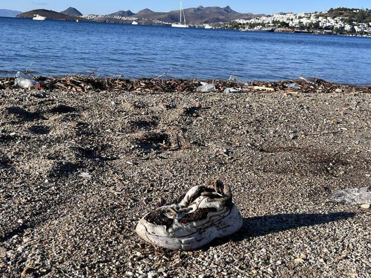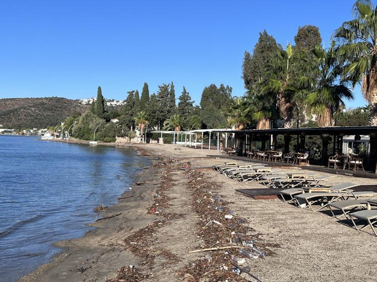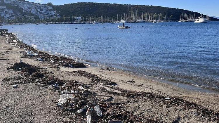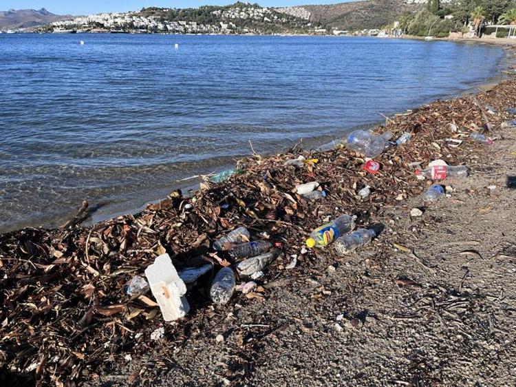 Muğla'nın Bodrum ilçesinde etkili olan sağanak sonrası debisi yükselen derelerden denize akan suyla birlikte gelen çöpler, sahilleri ve Bitez Göleti'ni kirletti.