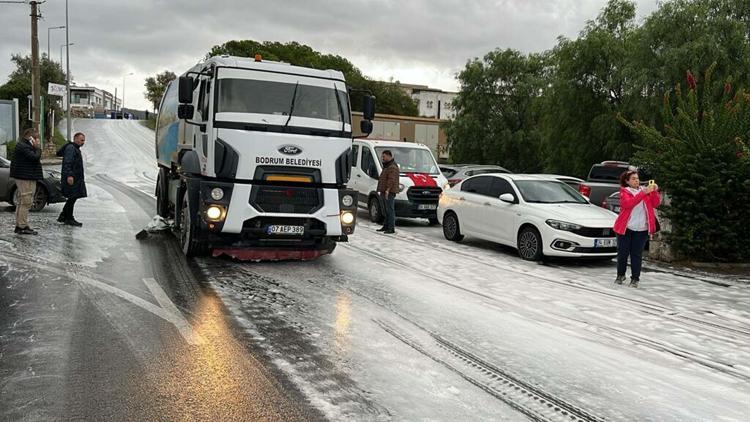Bodrum'da yollardaki beyaz köpük merak uyandırdı