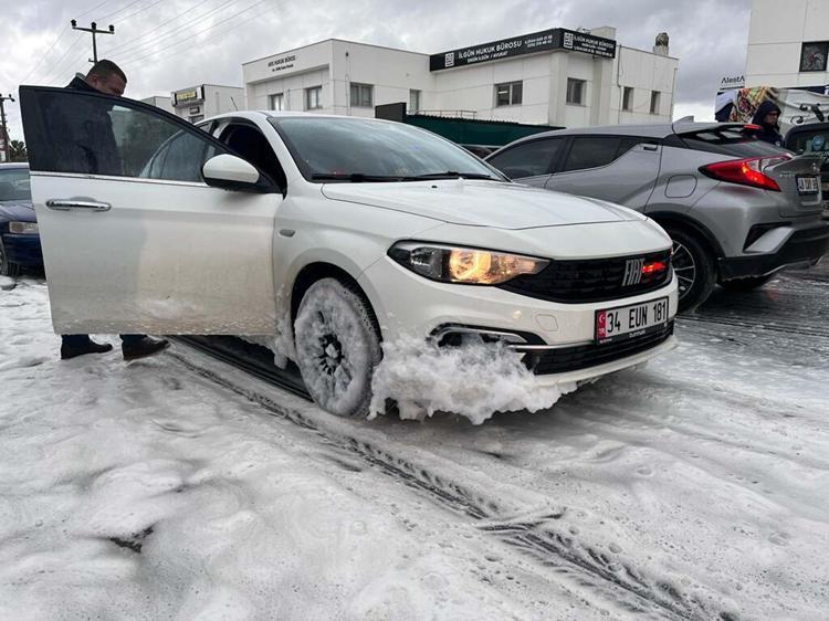 Nereden ve nasıl geldiği henüz belirlenemeyen beyaz köpük, sürücülere ve vatandaşlara hem zor anlar yaşattı, hem de merak uyandırdı.