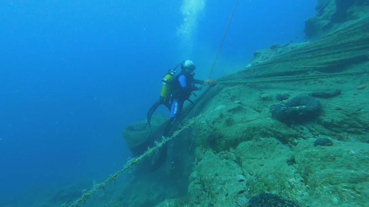 Muğla'nın Bodrum ilçesinde 'Aksona Mehmet' olarak tanınan bölgenin son süngercisi olduğu belirtilen Mehmet Baş (74) ile ekibi, deniz dibinden 500 metrekare büyüklüğünde hayalet ağ çıkardı.
