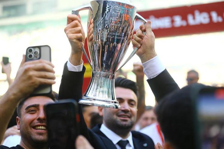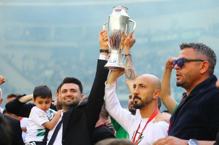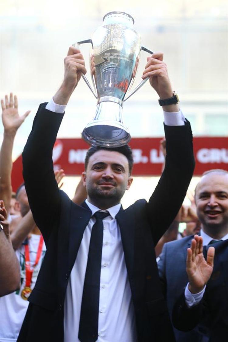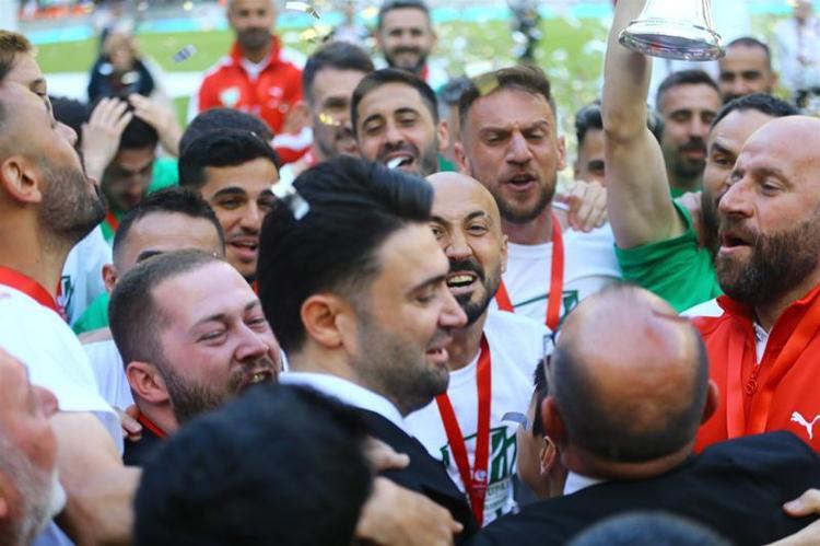 Bursasporlu futbolcular şampiyonluk kupasını kaldırdı