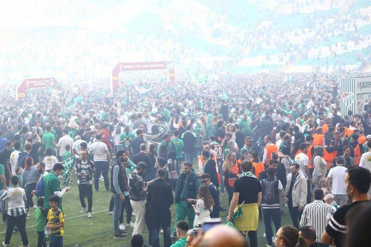 3’üncü Lig 1’inci Grup 29’uncu hafta karşılaşmasında evinde ağırladığı Bornova 1877 Sportif’i 4-1 mağlup ederek kupayı kaldıran Bursasporlu futbolcular, şampiyonluk sevincini yeşil-beyazlı taraftarlarla kutladı.