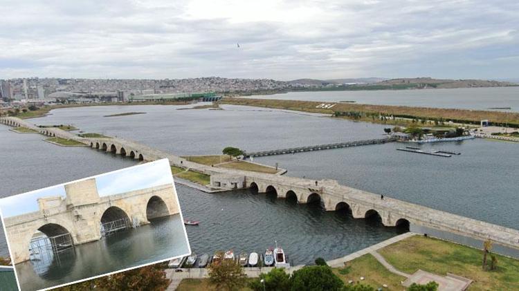 Mimar Sinan tarafından inşa edilen Büyükçekmece'deki tarihi Kanuni Sultan Süleyman Köprüsü'nde restorasyon çalışmaları başladı.