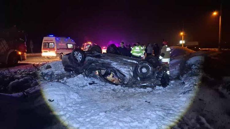 Buzlu yolda otomobil takla attı; yaralılar itfaiye tarafından kurtarıldı
