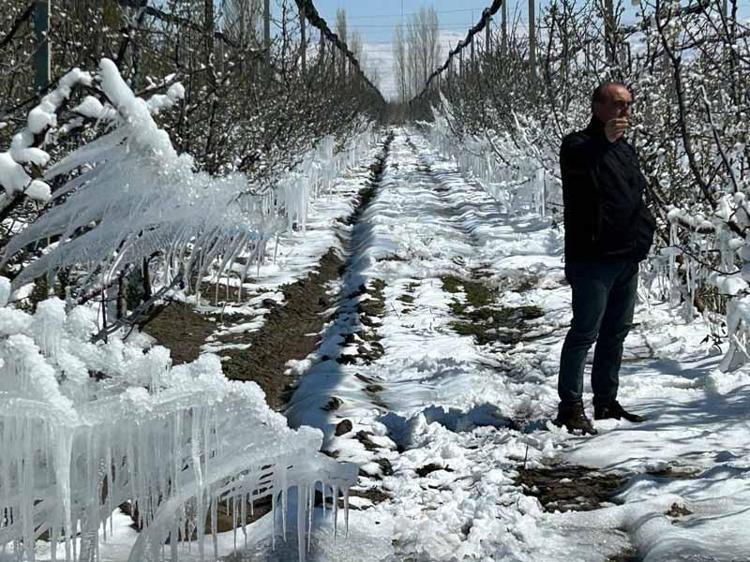 Akşam hava sıcaklığı 1-2 derecedeyken spring yöntemini başlatırız. Sabah da hava sıcaklığı 1-2 olduğunda buzlar eriyene kadar sistem çalışır. Herhangi bir zarar olmaz. Bazen 3 gün bile sürdüğü olur. Hava çok soğuk olduğu için springlerimizin bazıları dondu ve çalışmadı. 'Spring' yönteminin uygulanmadığı yerlerde elma, soğuğa dayanamaz. Don olayı gelmeden bahçelerimizin bütün springlerini ya da damlama sistemlerini ayarlıyoruz. Yukarıdan veya aşağıdan sulama ile soğuğun derecesini düşürmeye çalışıyoruz. Gece eksi 14'leri gördük. Çok büyük zararımız oldu. Devletin desteğini bekliyoruz" dedi.