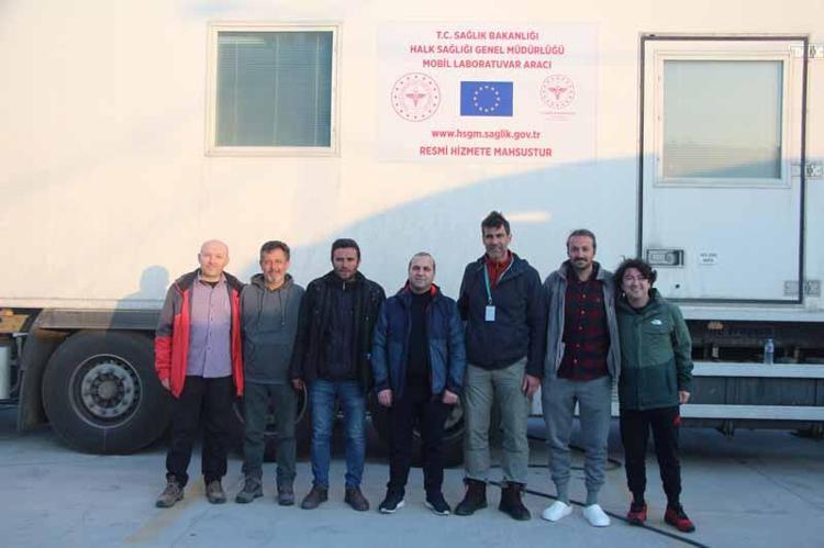 Sağlık Bakanlığı Halk Sağlığı Genel Müdürlüğü'ne ait saha araştırma aracıyla mobil laboratuvar, depremlerin yıktığı Hatay'da su kalitesine ve salgın hastalıklara karşı hızlı analizler yapılmasını sağlıyor.