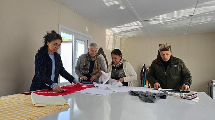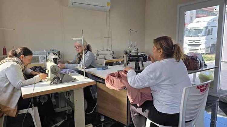 Hatay'ın Defne ilçesinde 6 Şubat depreminin ardından kente gelen gönüllü eğitmenlerden dikiş-nakış öğrenen 15 kadın, dernek kurup, hayırseverlerin desteğiyle atölye açtı.
