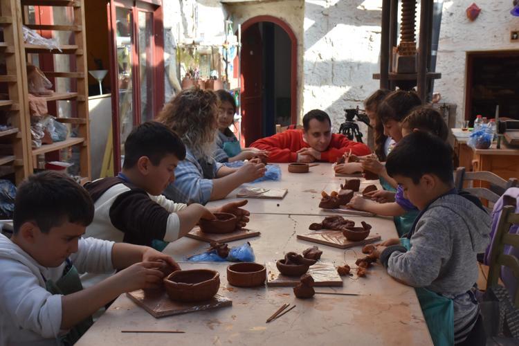 Kahramanmaraş merkezli depremin ardından aileleriyle birlikte İzmir'e yerleşen depremzede çocuklara gönüllü öğretmenler tarafından Çeşme Halk Eğitim Merkezi'nde sanat, spor, yabancı dil eğitimleri verilmeye başlandı. İlk etkinliklerinde seramik öğretmenlerinden eğitim alarak hayallerini çamura yansıtan çocukların büyük çoğunluğunun ev yapmak istemesi, öğretmenleri duygulandırdı. Hatay'dan gelen çocuklardan Duru Görüroğlu (7), “Bugün çamurdan bir ev yaptım. Evin bahçesine de depremden yıkılan betonları yerleştirdim" dedi.
