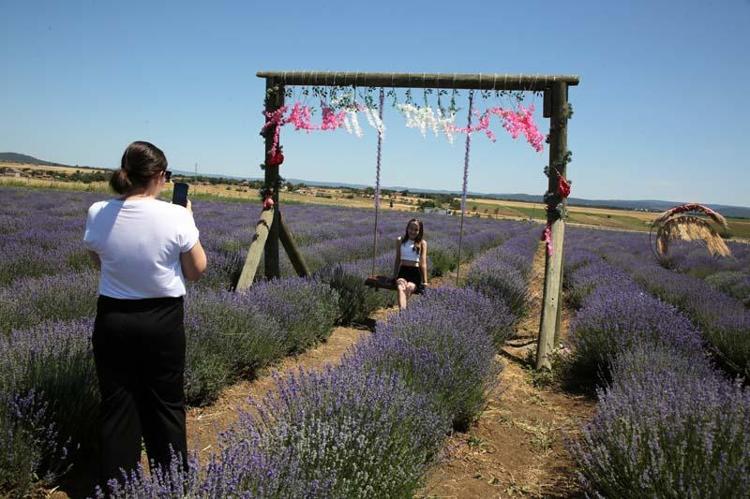 Keşan'da kıraç alanların tarıma kazandırılması amacıyla ekimi yapılan lavanta, hem üreticilerin ekonomisine hem de şehrin turizmine katkı sağlıyor. Bitkinin çiçek açmasıyla, kentteki lavanta tarlalarında güzel görüntüler oluşuyor. Fotoğraf stüdyosunu andıran mor renkli tarlaları ziyaret edenler, üreticiler tarafından kurulan dekorlarda fotoğraf çektiriyor.