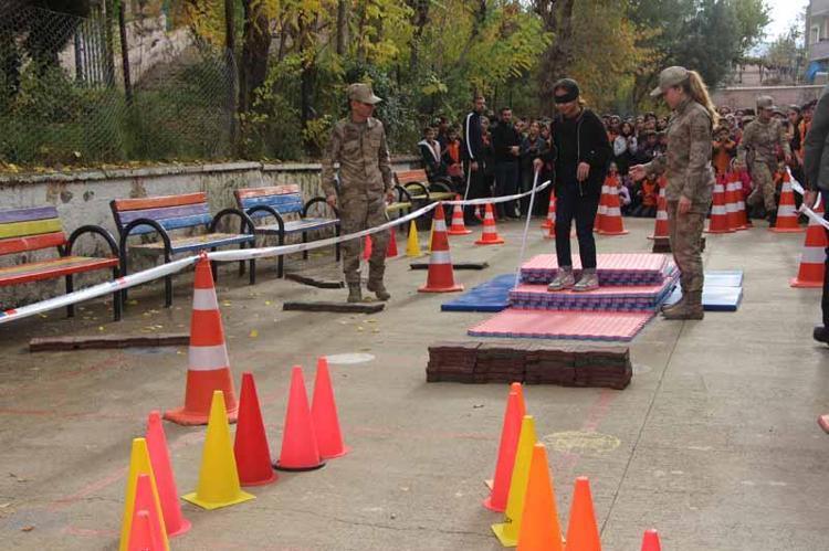 Şırnak İl Jandarma Komutanlığı tarafından 'Biz engelleri görüyor, engellileri anlıyoruz' sloganıyla Vali Aydın Arslan İmam Hatip Ortaokulu'nda 'Empati Parkuru' kuruldu. Etkinliğe katılan Vali Osman Bilgin ile öğrenciler gözlerini bandajla kapatarak parkurda yürüdü.