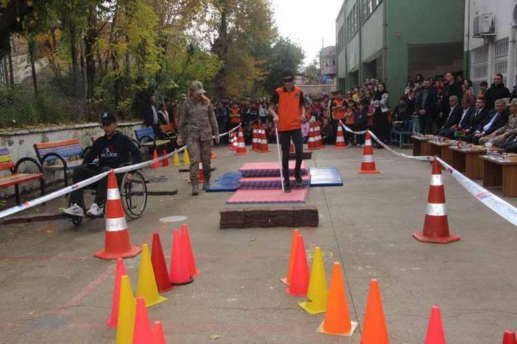 Şırnak'ta '3 Aralık Dünya Engelliler Günü' nedeniyle İl Jandarma Komutanlığı tarafından 'Biz engelleri görüyoruz, engellileri anlıyoruz' sloganıyla Vali Aydın Arslan İmam Hatip Ortaokulu'nda öğrencilerin engellilerin çektikleri sıkıntıları anlaması için, 'Empati Parkuru' kuruldu. Öğrenciler yürüme ve görme engellilerin yaşadıklarını parkurlarda tecrübe etti. Tekerlekli sandalyeye oturup parkurdaki engelleri aşmaya çalışan öğrenciler, diğer parkurda da gözleri kapalı olarak ellerindeki bastonla ulaştıkları parkurun sonunda masadaki su dolu sürahiden bardağa su doldurmaya çalıştı.
