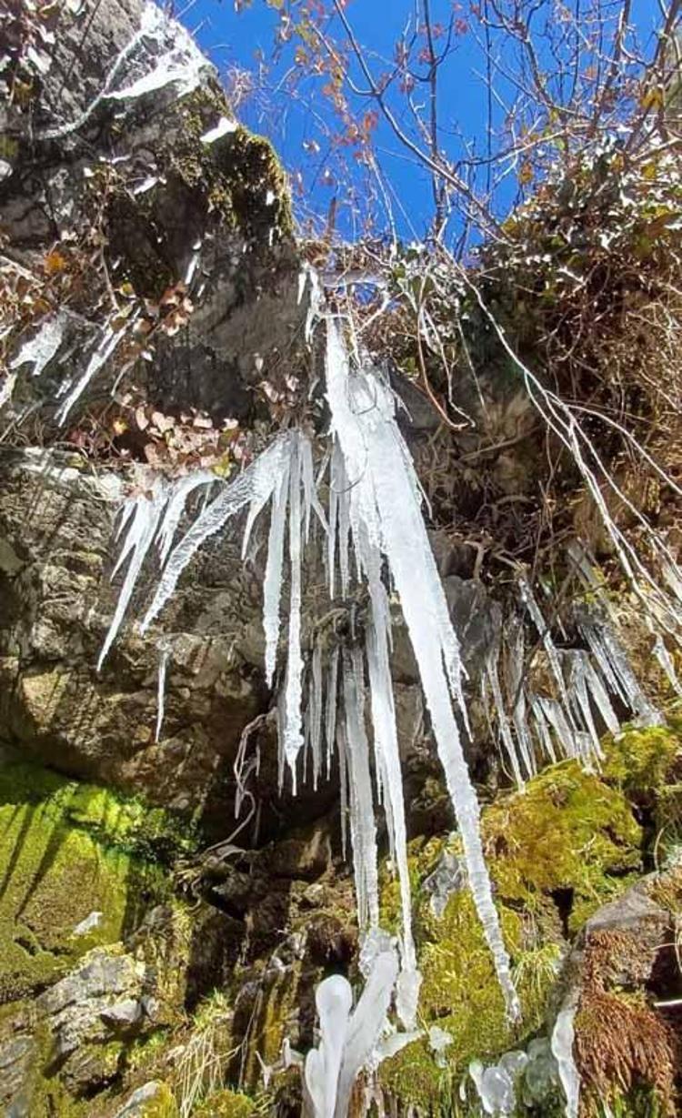 Şelalede oluşan buzlanma ile ağaçlarda oluşan buz sarkıtları görenleri hayran bıraktı. İslahiye Dağcılık ve Kahramanmaraş Atlantis ve Doğa Sporları Kulübü üyeleri, doğa yürüyüşünde şelalenin ve buz sarkıtlarının fotoğraflarını çekti.
