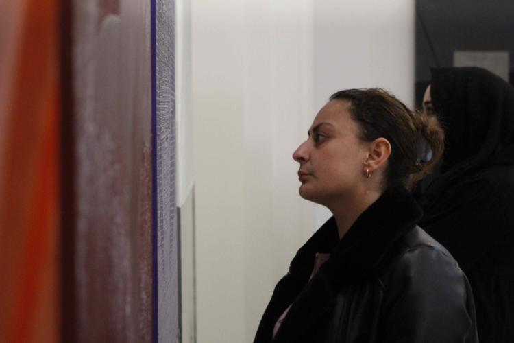 Sarı renk nasıl, mor, turuncu, siyah, beyaz. İlk kez böyle renklere dokunuyorum ve çok garip hissediyorum. Beni hocam davet etti, hiç gelmemiştim daha önce böyle bir sergiye. İlk kez böyle bir şey ile karşılaşıyorum.