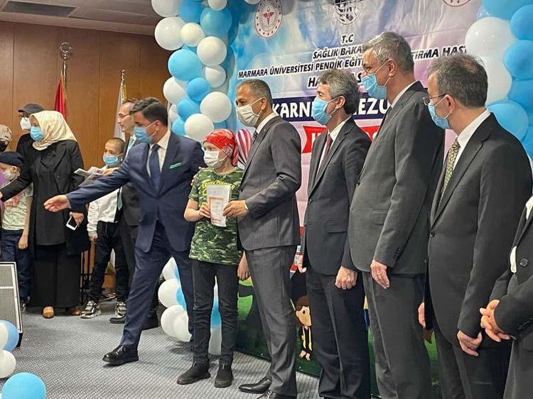 İstanbul Valisi Ali Yerlikaya, "Bugün karne ve mezuniyetle ilgili İstanbulumuzun en anlamlı, en özel törenine katılmaktan büyük onur duyuyorum. İstanbul'daki karne törenin ilki Marmara Üniversitesi Pendik Eğitim Araştırma Hastanemizde yapılıyor. 2017'den itibaren İstanbul'da 14 hastanede İl Milli Eğitim Müdürlüğü ve İl Sağlık Müdürlüğü işbirliğinde böyle bir projeyle bin 19 yavrumuza eğitim verildi. Evlerimizde tedavi süreci devam eden 810 öğrencimiz bin 450 öğretmenimiz ile birlikte eğitimlerinden geri bırakmıyoruz" dedi.