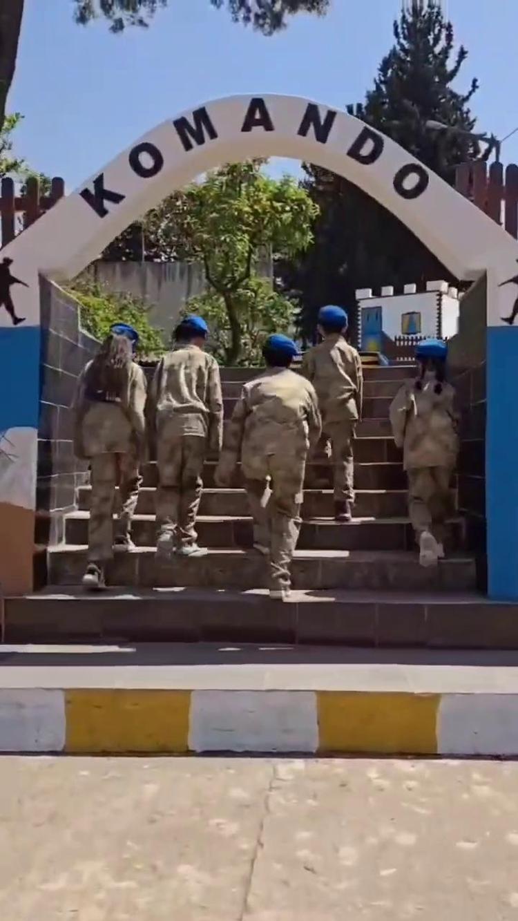 Komando kıyafetleri giyen çocuklar, bir günlüğüne asker oldu.