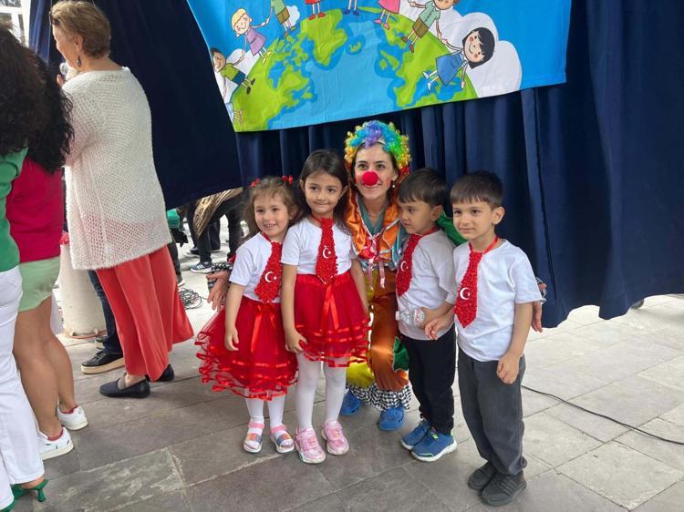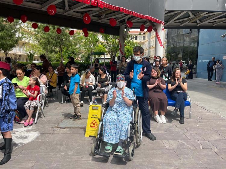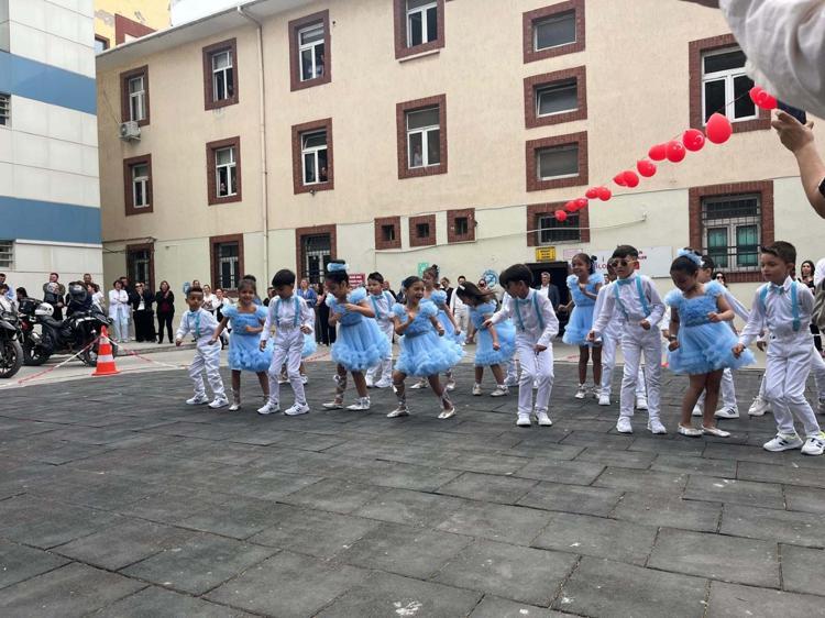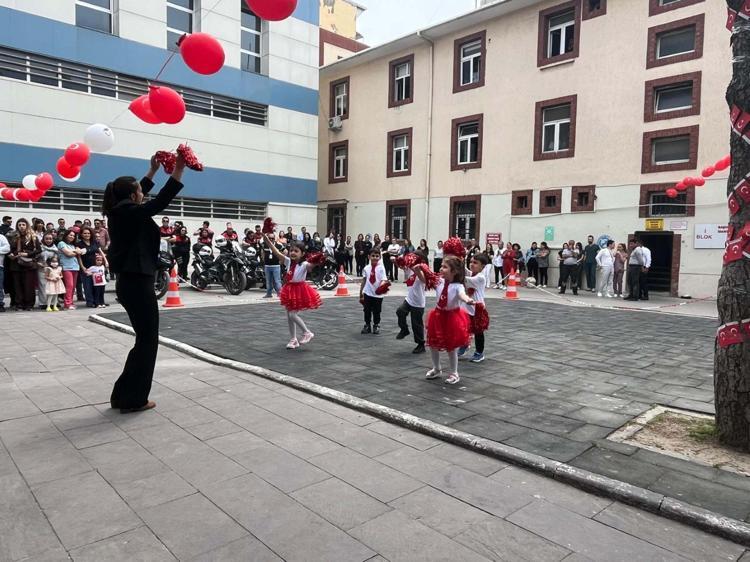 İzmir'de ilkokul öğrencileri, 23 Nisan Ulusal Egemenlik ve Çocuk Bayramı kapsamında, Behçet Uz Çocuk Hastalıkları ve Cerrahisi Eğitim ve Araştırma Hastanesi'nde kalan ve tedavi gören çocuklar için gösteri düzenledi.