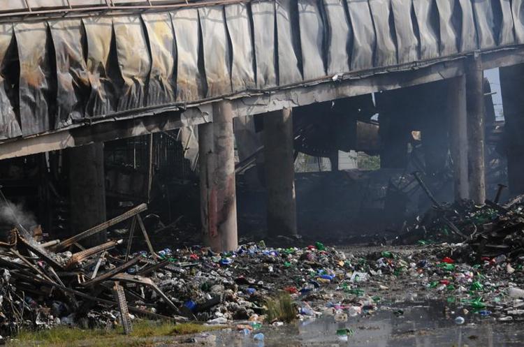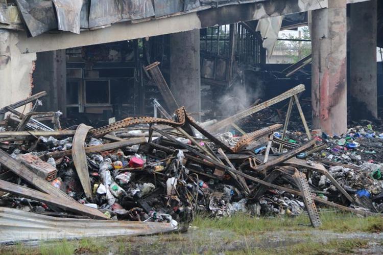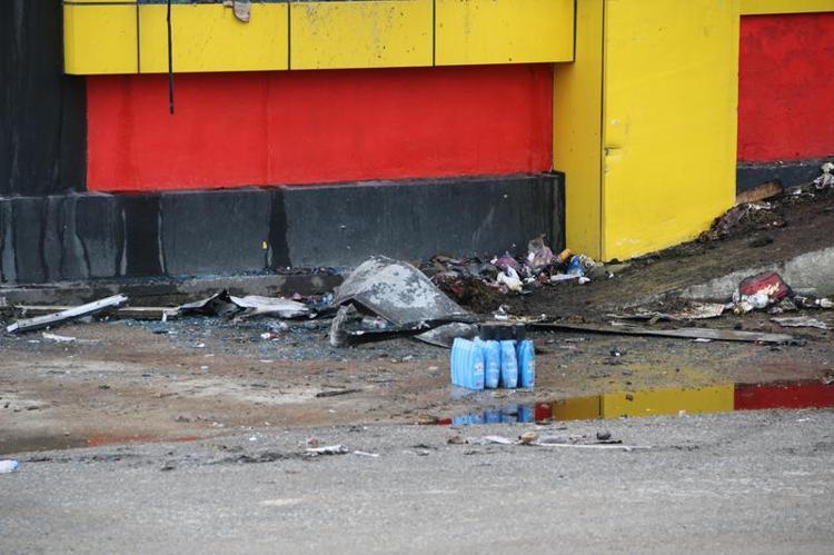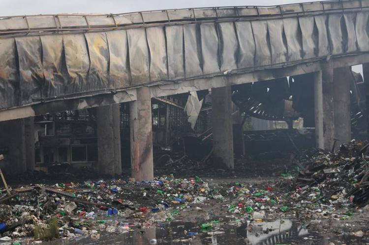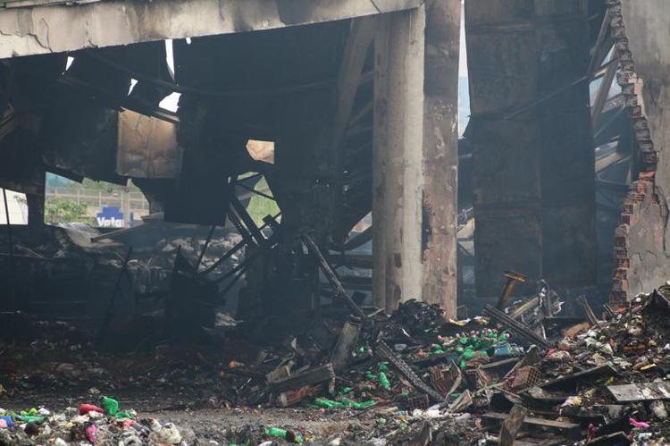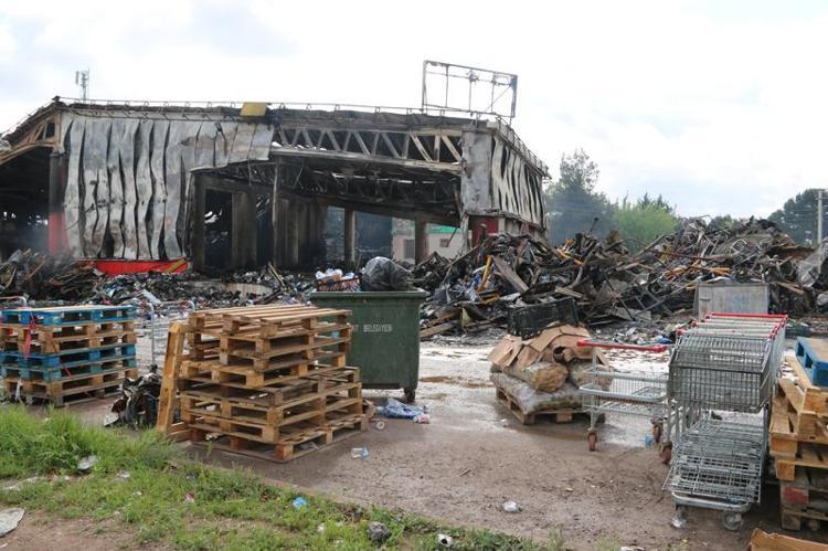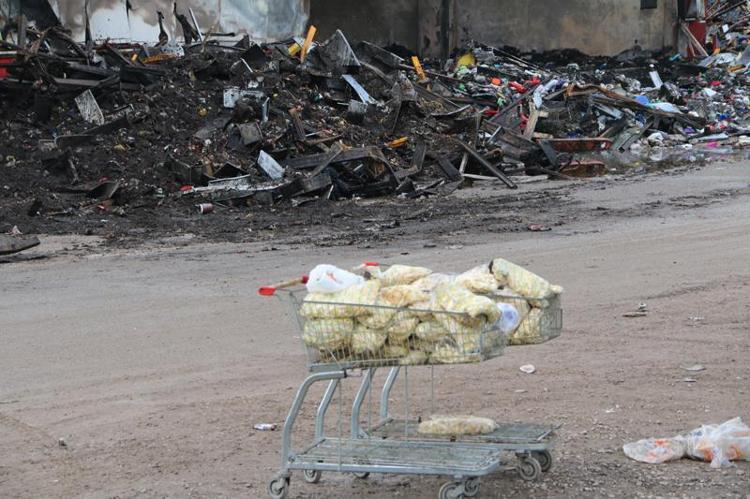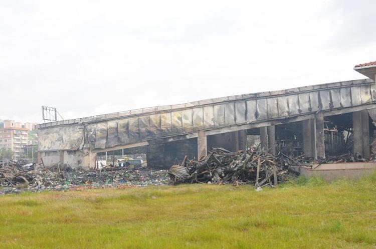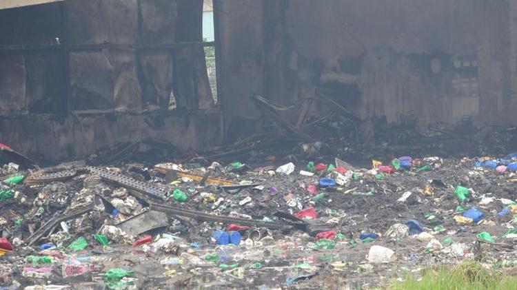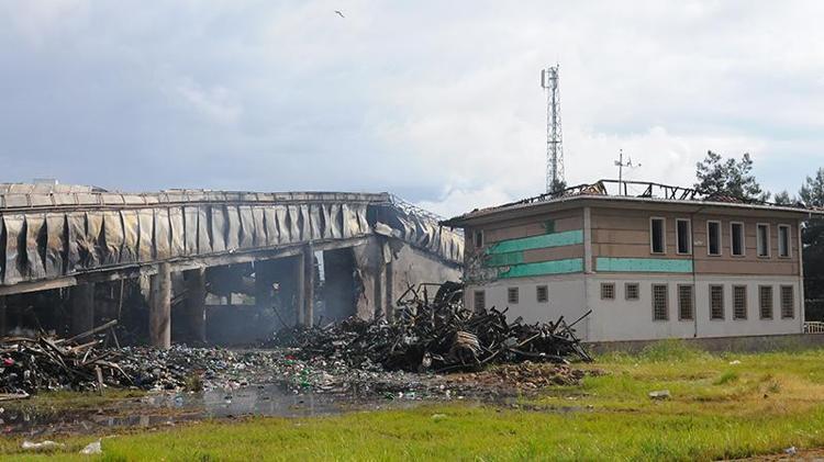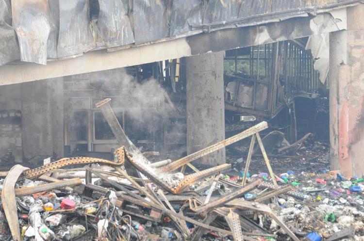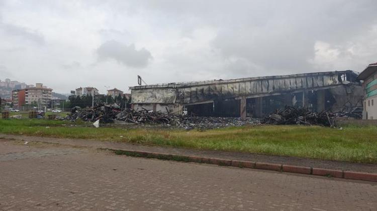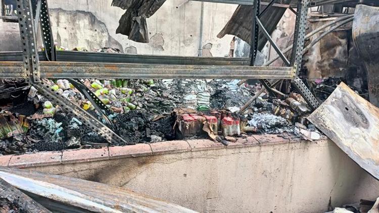 Yangında 1250 metrekare kapalı alanda bulunan marketin çatısıyla birlikte tamamının yandığı görüldü. İş makineleriyle içeride bulunan malzemeler dışarı taşınırken, marketten geriye kolonlar ve yanmış ürünler kaldı.