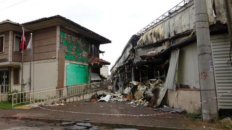 İzmit'te yanan 1250 metrekare kapalı alana sahip market ve belediye binasında hasar tespiti