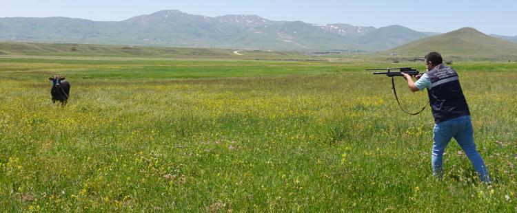 Erzurum'da Kurban Bayramı'nın ilk gününde kaçan kurbanlıklar sahiplerine zor anlar yaşattı. Uzunahmet Mahallesi'nden Pasinler Ovası'na kaçan, Erzurum Büyükşehir Belediyesi'nin 'Kurban Yakalama Timi' görevlisinin tüfekle 3 uyuşturucu iğne attığı boğa, kementle yakalandı. İğnelere rağmen sakinleşmeyen boğanın saldırdığı sahibi, boynuz darbelerinden son anda kurtuldu.