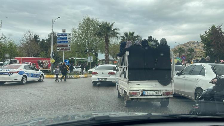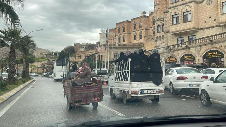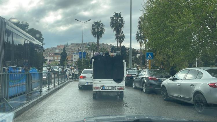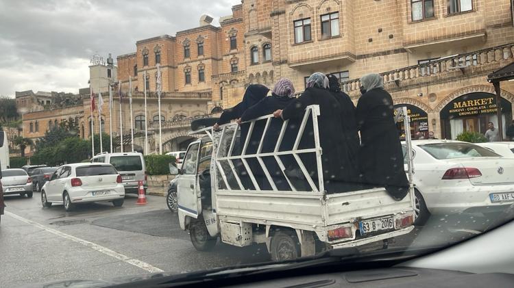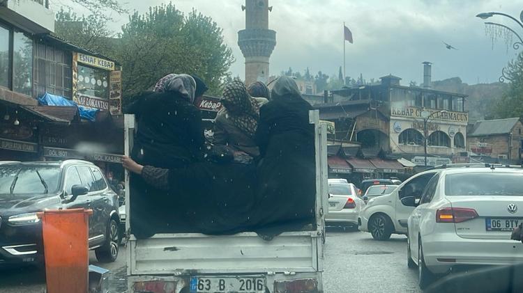 Şanlıurfa’da, kamyonetin kasasında 9 kadının yağmur altında tehlikeli yolculuğu cep telefonuyla görüntülendi.