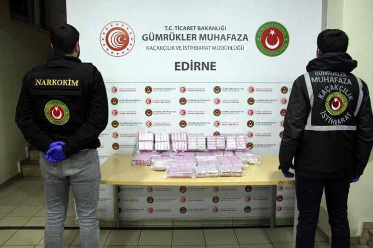 Edirne'de Bulgaristan’a açılan Kapıkule Sınır Kapısı’nda yurda giriş yapan 2 TIR’da 46 kilo 920 gram uyuşturucu ele geçirildi, 3 şüpheli gözaltına alındı.
