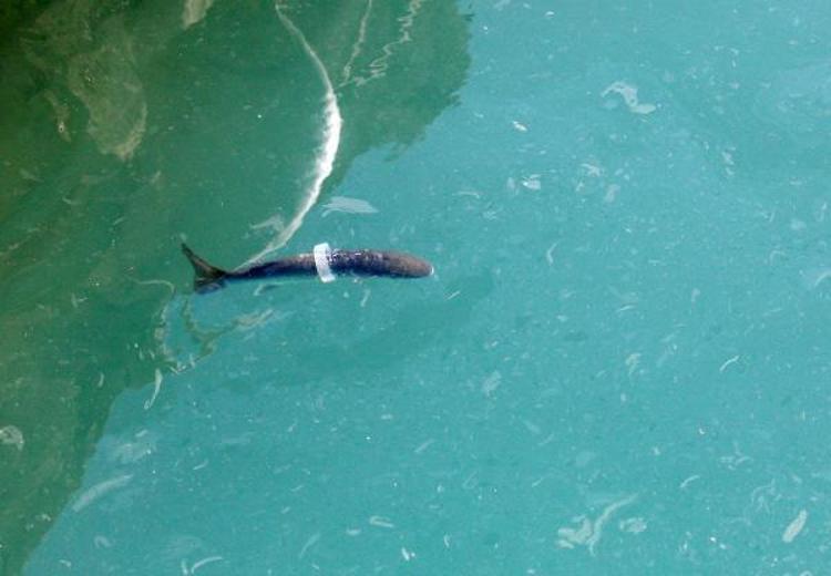 Antalya'nın Konyaaltı ilçesinde, sıkıştığı halkayla yüzen kefal balığı görüntülendi. Akdeniz Üniversitesi'nden (AÜ) Prof. Dr. Mehmet Gökoğlu, "Kefal balığının üzerinde plastik halka bulunuyor. O balık büyüdüğü zaman sıkmaya başlar. Balığın yaşamını olumsuz etkileyecek. Belki ileride ölümüne sebep olacak" dedi.