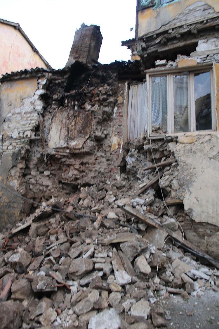 Aydın'ın Kuşadası ilçesinde, iki katlı tarihi ahşap ve yığma taş ev bugün öğlen saatlerinde meydana gelen 3.7 büyüklüğündeki depremde kısmen yıkıldı. Evde yaşayan Neriman Özgün ve eltisi Gültane Özgün zabıta ekipleri tarafından tehlike arz etmesi nedeniyle evden çıkartıldı. İki eltiye komşuları sahip çıktı.