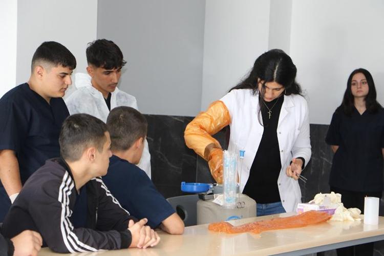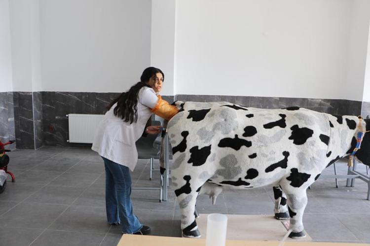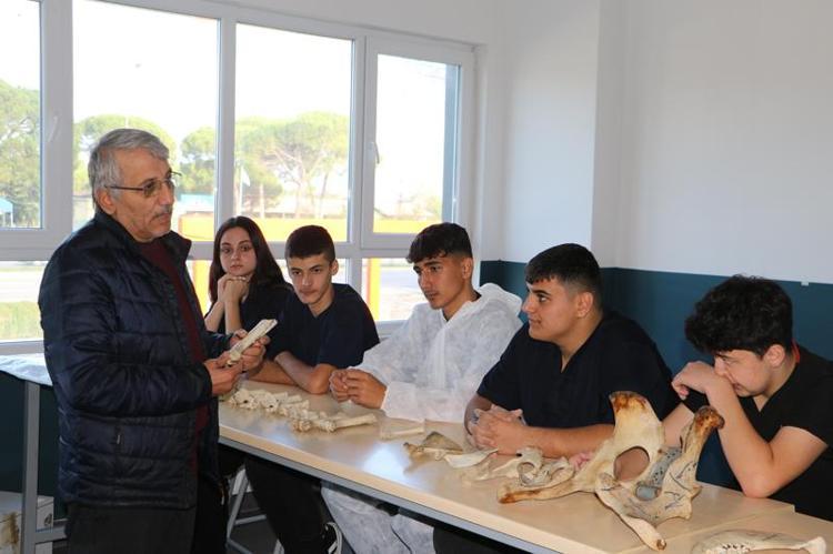 Öğrencilerin teorik bilgilerini pratikle pekiştirdiğini ifade eden Hayvan Yetiştiriciliği ve Sağlığı öğretmeni Sultan Aydemir, "Öğrencilerimize burada uygulama eğitimlerimizi maketler üzerinde vermeye çalışıyoruz. Bunu yaparken de öğrencilerin daha çok akıllarında kalmalarına da yardımcı oluyoruz. Teorik derslerimizde oluyor ama teorik derslerimizin üzerine gelip burada maketler üzerinde de uygulamalarımızı yapıyoruz. Suni tohumlama, kan alma, enjektör kullanımı gibi şeyleri öğrencilerimize öğretiyoruz. İmkanlarımız dahilinde okul içerisindeki uygulama laboratuvarlarımızda canlı hayvan üzerinde de uygulamalarımızı yapıyoruz. Örneğin pansuman yapabiliyoruz. Hayvana serum takma işlemini öğrencilerimizle birlikte yapmaya çalışıyoruz” diye konuştu.