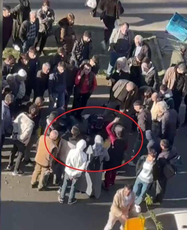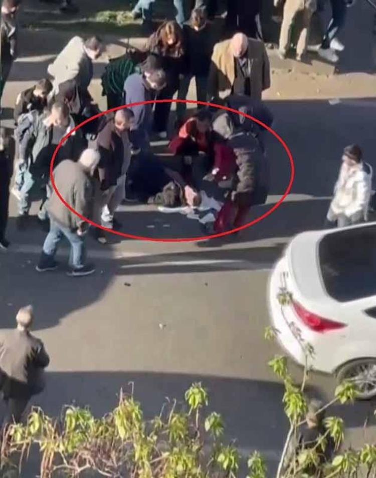 M.O. ağır yaralanırken, kazayı görenler sürücüye saldırdı. Yumruklu, tekmeli saldırı kameraya yansırken, sürücü çevredekilerin araya girmesi ile kurtuldu.