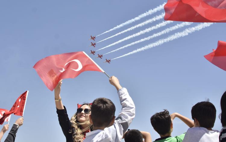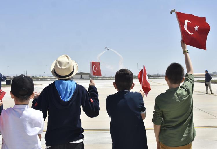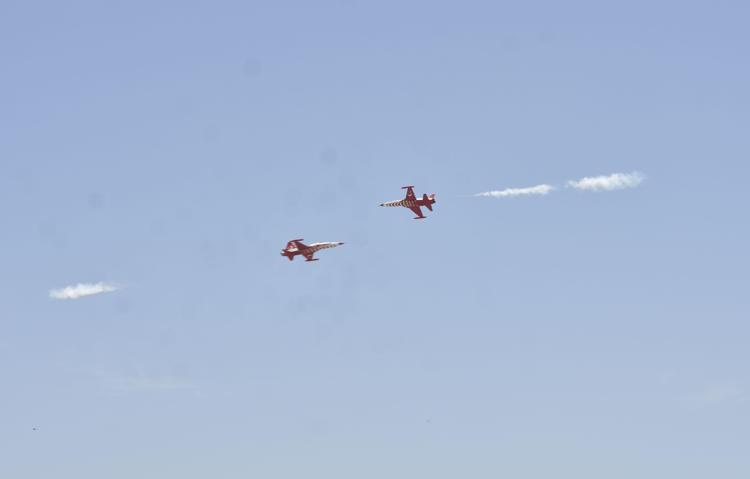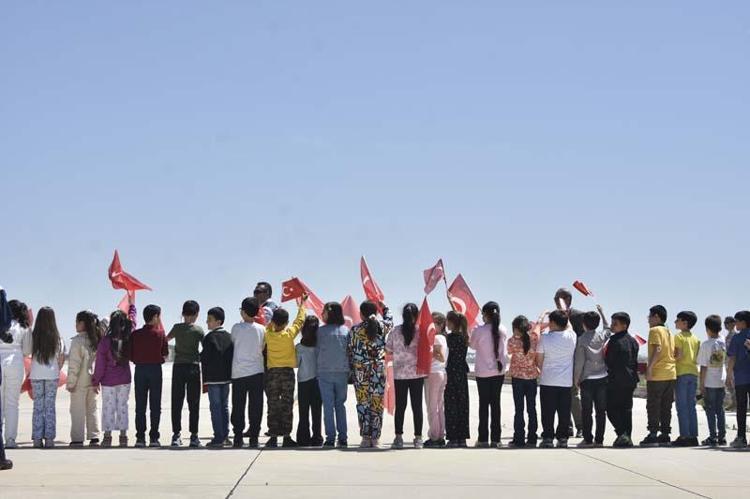 Burada Türk Yıldızları pilotlarıyla tanışan öğrenciler, yapılacak gösteri uçuşu hakkında bilgi aldı. Ardından piste giden öğrenciler, Türk Yıldızları ekibinin yaklaşık 1 saat süren gösteri uçuşunu izledi.