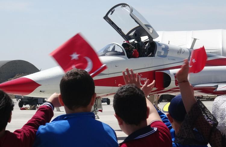 Öğrenciler, Türk Yıldızları'nı ziyaret edip, uçuşu izledi