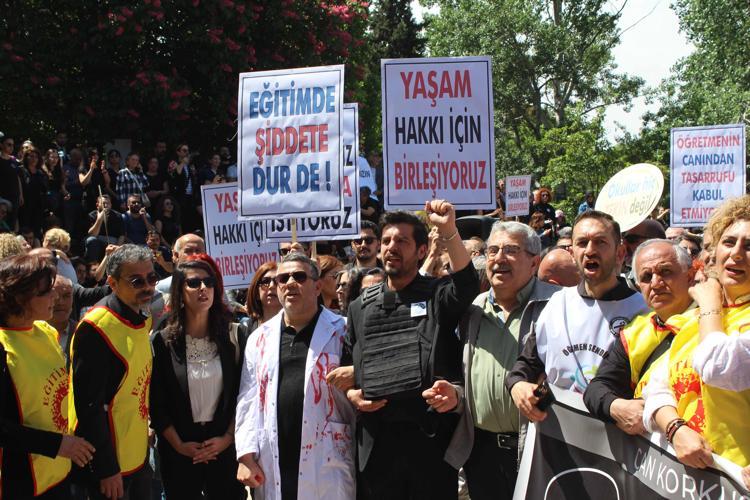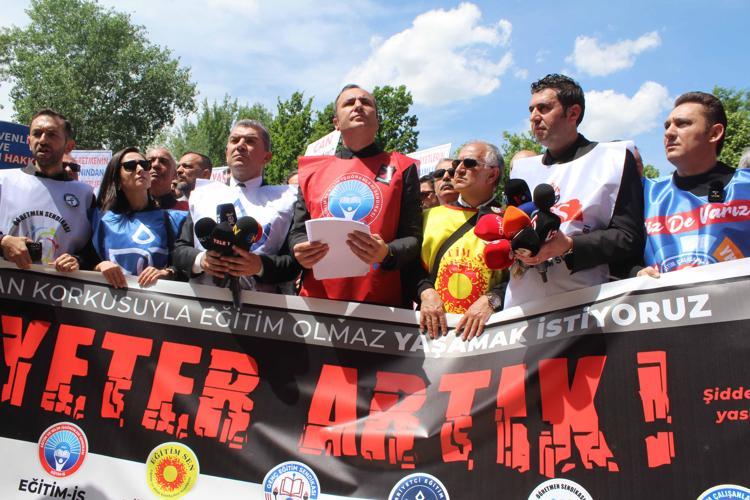 Öğretmenlere yönelik şiddet olayları nedeniyle pek çok eğitim sendikası, bir günlüğüne Türkiye genelinde iş bırakma eylemi başlattı. Ankara'da, Milli Eğitim Bakanlığı önünde toplanan yaklaşık 1500 eğitimci, TBMM önüne yürüdü. Öğretmenler, 'Okullarda ölmek istemiyoruz', 'Yaşasın öğretmen dayanışması', 'Birleşe birleşe kazanacağız, 'Kurtuluş yok tek başına, ya hep beraber ya hiçbirimiz', 'Sorunların sebebi, eğitim sistemi', 'Susma haykır, şiddete hayır' diye sloganlar attı.