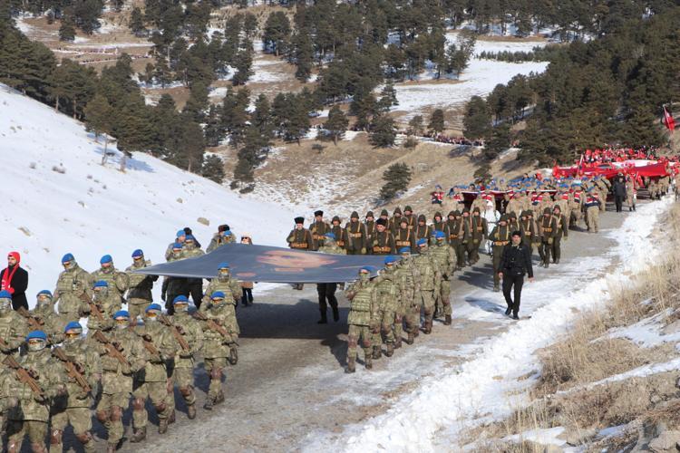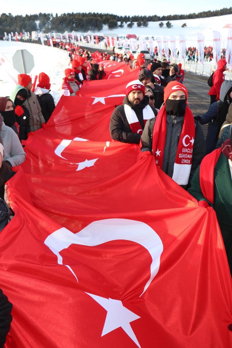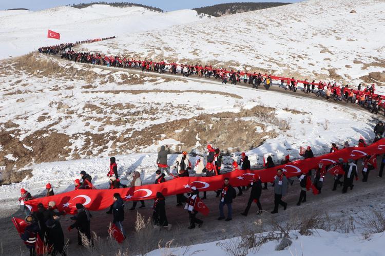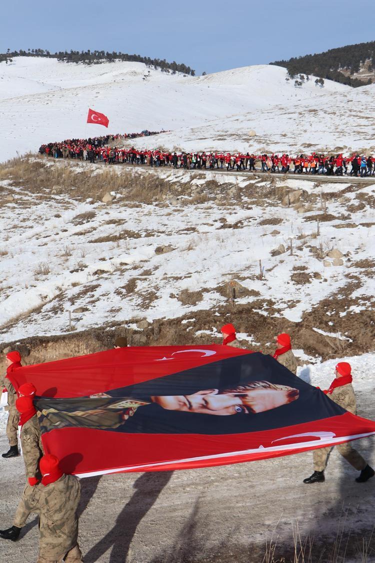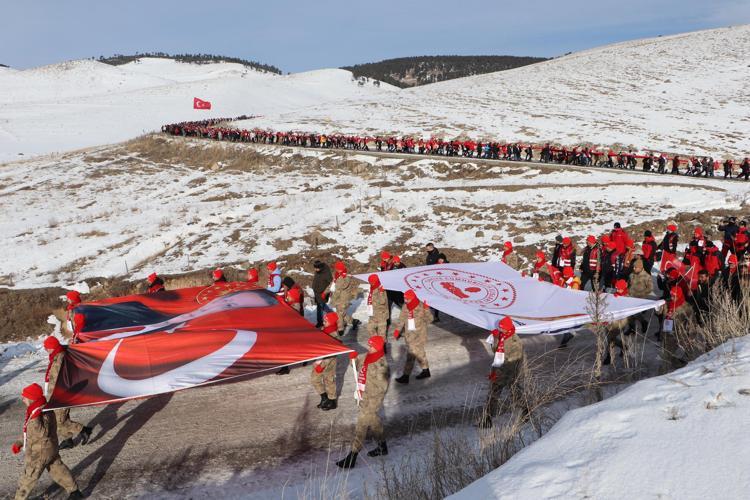 Kars’ın Sarıkamış ilçesinde Sarıkamış Harekatı sırasında donarak şehit olan binlerce Mehmetçik’i anmak için 'Türkiye Şehitleriyle Yürüyor' temasıyla düzenlenen 5,5 kilometrelik yürüyüş başladı.