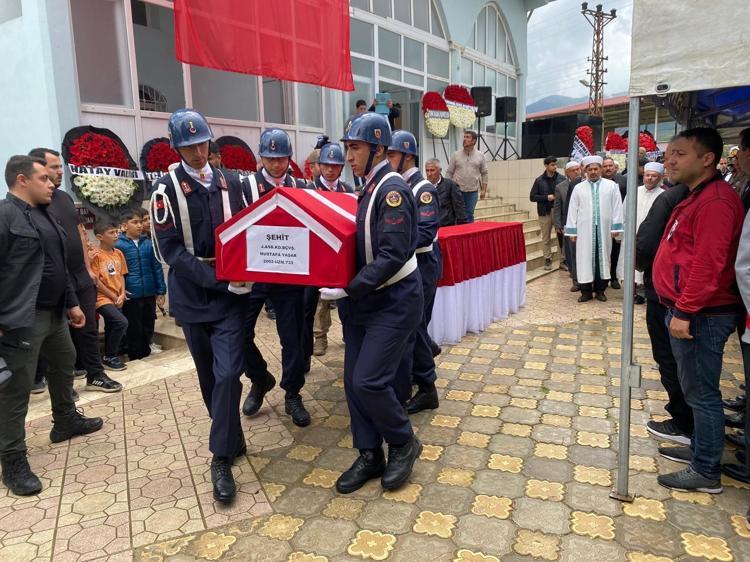 Evli ve 3 çocuk babası olan Jandarma Astsubay Kıdemli Başçavuş Mustafa Yaşar'ın cenazesi, Erzurum İl Jandarma Komutanlığı'nda düzenlenen törenin ardından memleketi Hatay'ın Hassa ilçesine getirildi.