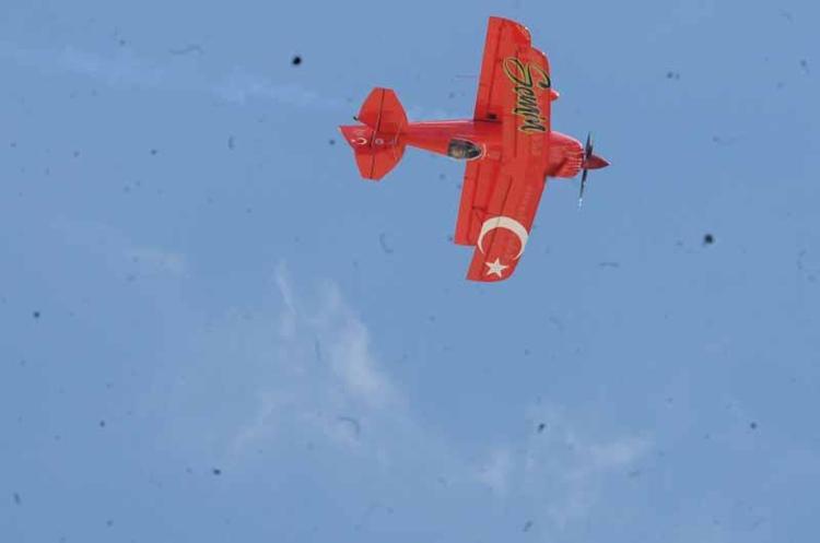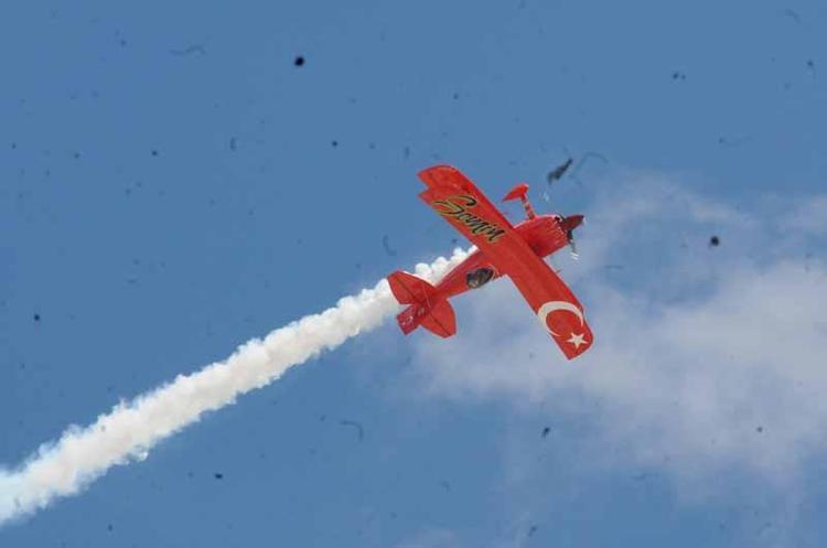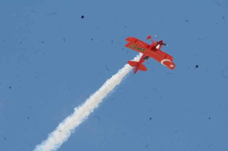 Türkiye'nin ilk profesyonel kadın akrobasi pilotu Semin Öztürk Şener, çocuklara özel 'Yeni Menekşe' adlı uçağıyla akrobasi gösterisi yaptı. Gösteri çocukların yanı sıra ailelerince ilgiyle izlendi. Etkinliğe katılanlar, Şener'in zor manevralarının olduğu gösteriyi cep telefonlarına kaydetti. Gösterisinin ardından sevenleri için fotoğraflarını imzalayan ve tebrikleri kabul eden Semin Öztürk Şener, havada olmanın kendisine mutluluk verdiğini söyledi.