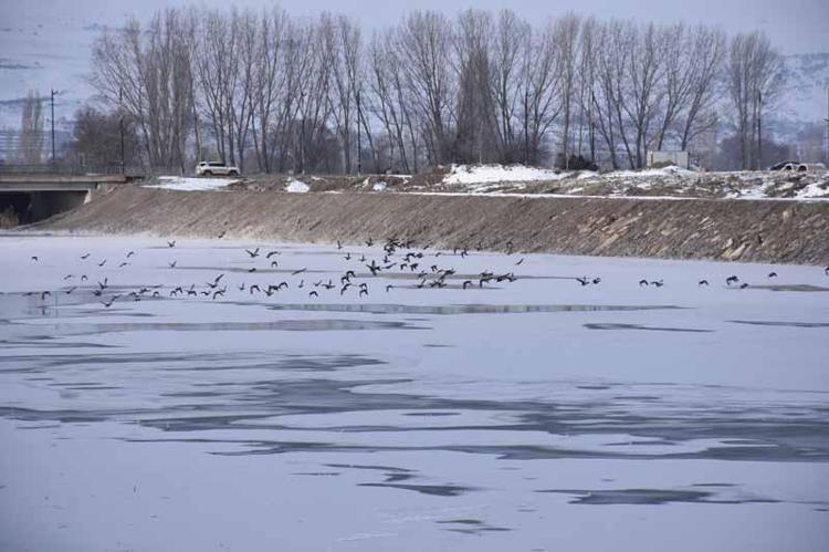 1355 kilometre ile Türkiye'nin en uzun nehri olan Kızılırmak'ın Sivas kent merkezinden geçen bölümlerinin büyük bölümünün buzla kaplandığı görüldü.