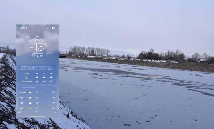 Sivas'ta soğuk hava dalgası sürerken, kent merkezinde sıcaklık eksi 18 derece olarak ölçüldü. Kızılırmak Nehri'nin kent merkezinden geçen kısımlarının büyük bölümü buz tuttu.