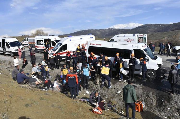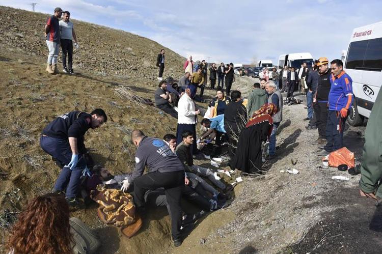 Kazada, otomobilde bulunan 1 kişi öldü, 17 kişi de yaralandı. İhbarla olay yerine çok sayıda polis, sağlık ve kurtarma ekibi sevk edildi. Sağlık ekibinin ilk müdahalesini yaptığı yaralıların bir kısmı ambulanslarla kentteki hastanelere kaldırıldı. Bazı yaralılar için de bölgeye Sağlık Bakanlığı'na bağlı ambulans helikopter sevk edildi. Kara yoluna inen helikopter, yaralıları alıp kent merkezine götürdü.