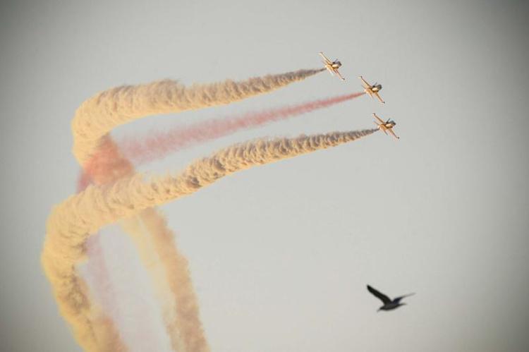 İzmirliler, 29 Ekim Cumhuriyet Bayramı kutlamaları kapsamında Gündoğdu Meydanı'nda gösteri yapacak Türk Yıldızları'nın sürpriziyle karşılaştı. Prova uçuşlarında bile hayranlık uyandıran Türk Yıldızları'nın büyük gösterisi ise yarın 17.30'da yapılacak.