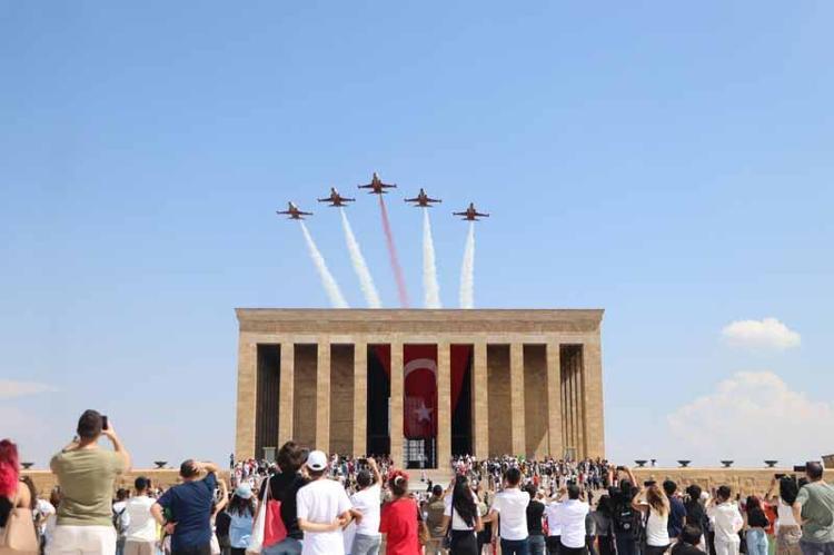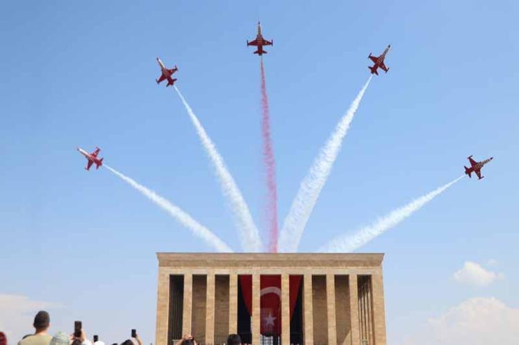 Türk Hava Kuvvetleri akrobasi timi Türk Yıldızları, 30 Ağustos Zafer Bayramı nedeniyle Anıtkabir semalarında saygı uçuşu yaptı.
