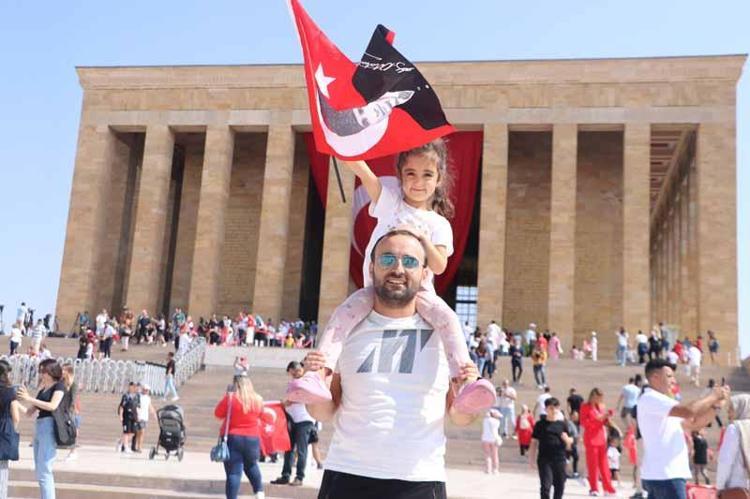 Türk bayrakları ve Atatürk posterleriyle Ata'nın manevi huzuruna çıkan vatandaşlar, tören alanı ve mozole etrafında fotoğraf çektirdi. Bazı vatandaşlar da tören alanında 100'üncü Yıl Marşı'nı okudu.