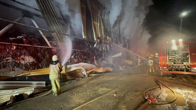 Yangın, saat 18.30 sıralarında Deri Organize Sanayi Bölgesi'nde bulunan geri dönüşüm tesisinde bilinmeyen nedenle çıktı.