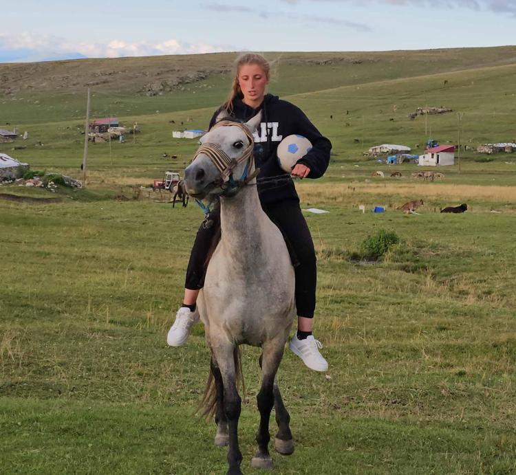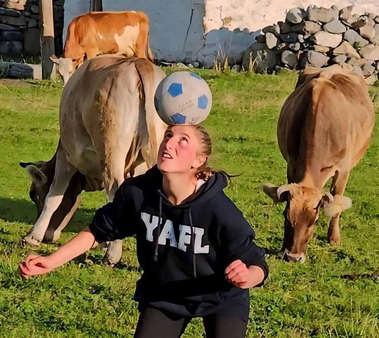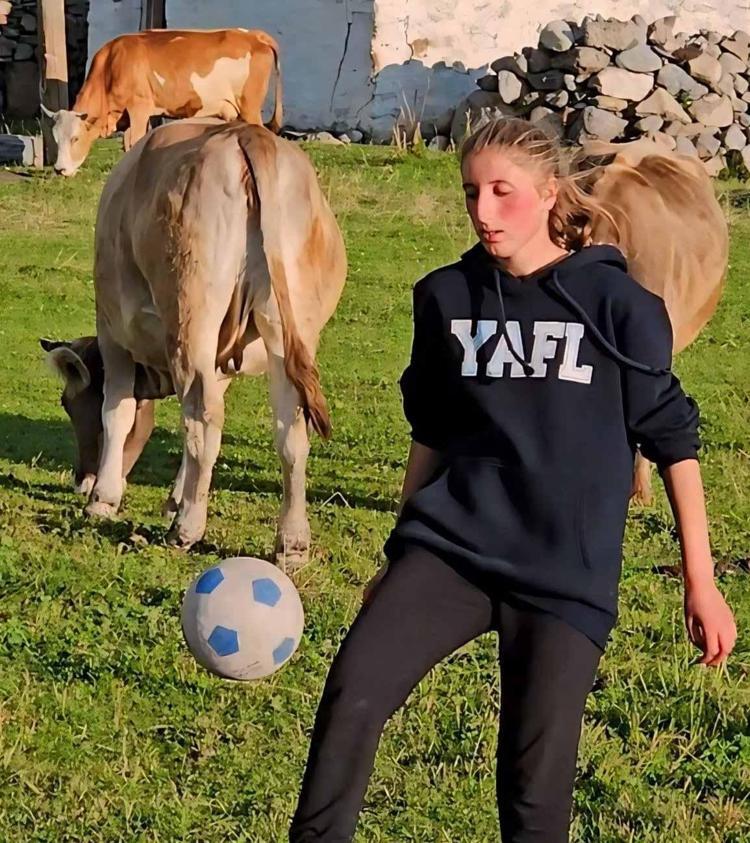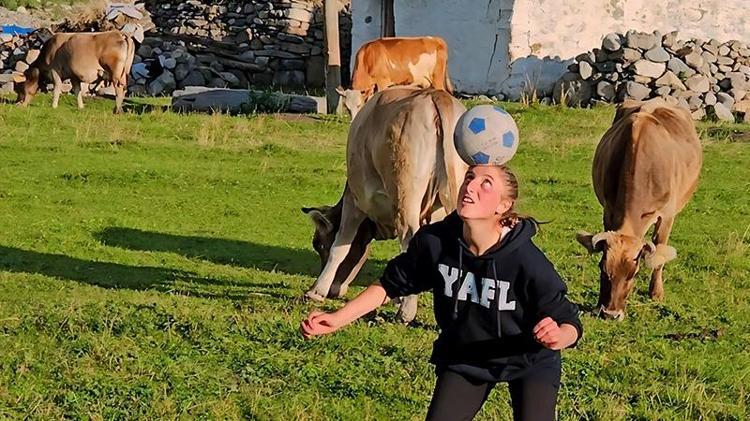 Ardahan’da yaylada kendilerine ait ineklerini otlatırken bir yandan da futbol oynayan Irmak Zarife Şeker’in (17) en büyük hayali, bir kadın futbol takımında oynamak. Hayalini gerçekleştirmek için beden eğitimi ve spor yüksekokulu (BESYO) sınavlarına hazırlandığını belirten Şeker, “İnekler yaylada otlarken ben de top koşturuyor, antrenman yapıyorum. Her iki ayağımı da kullanabiliyorum. Koyu Beşiktaşlıyım. Ronaldo hayranıyım. Videolarını izleyip onun yaptığı hareketleri birebir yapmaya çalışıyorum, ailem de bana büyük destek veriyor” dedi.